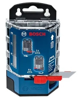 - Izrađena su od visokoizdržljivog S2 CVM čelika koji omogućava dug radni vijek - Kompatibilna su sa svim Bosch Professional standardnim univerzalnim noževima - Kompaktni spremnik omogućava bezbjedno izvlačenje pojedinačnog sječiva ili pet sječiva istovremeno, a u njemu mogu da se drže i korišćena sječiva